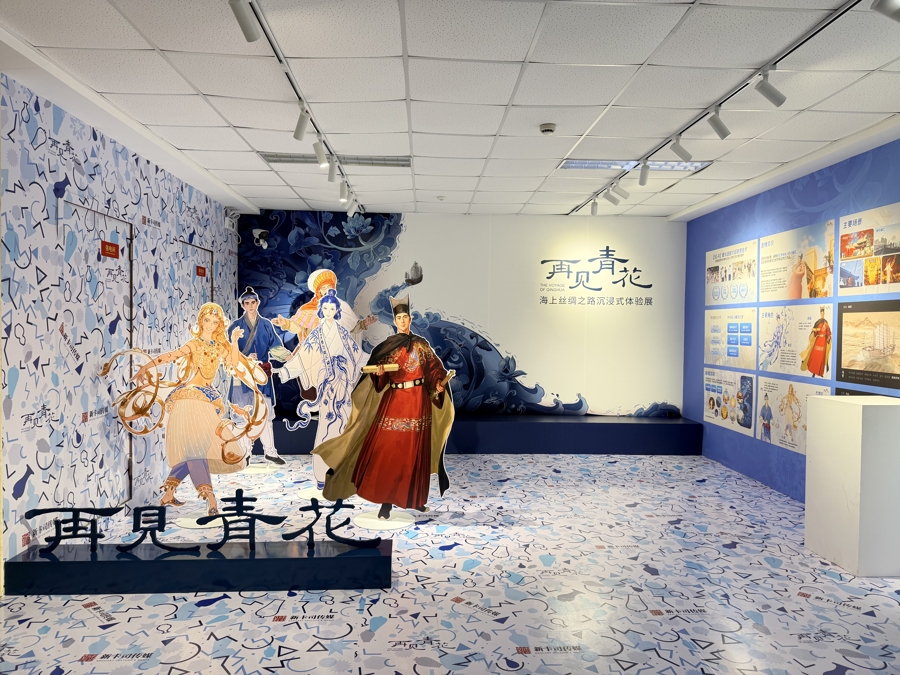 作为本届读书节的创新之举,“第六届文创博物馆”全天候向师生及家长开放。其中最引人入胜的是 《再见青花》海上丝绸之路沉浸式XR(扩展现实)体验展。参观者戴上XR设备就能瞬间穿越回千年前的航海时代,“亲眼目睹”青花瓷如何从烧制、装船到远销海外的全过程。这种沉浸式的互动体验,让厚重的历史变得可触可感,极大地激发了青少年对中华优秀传统文化与世界文明交流史的好奇与探索欲。